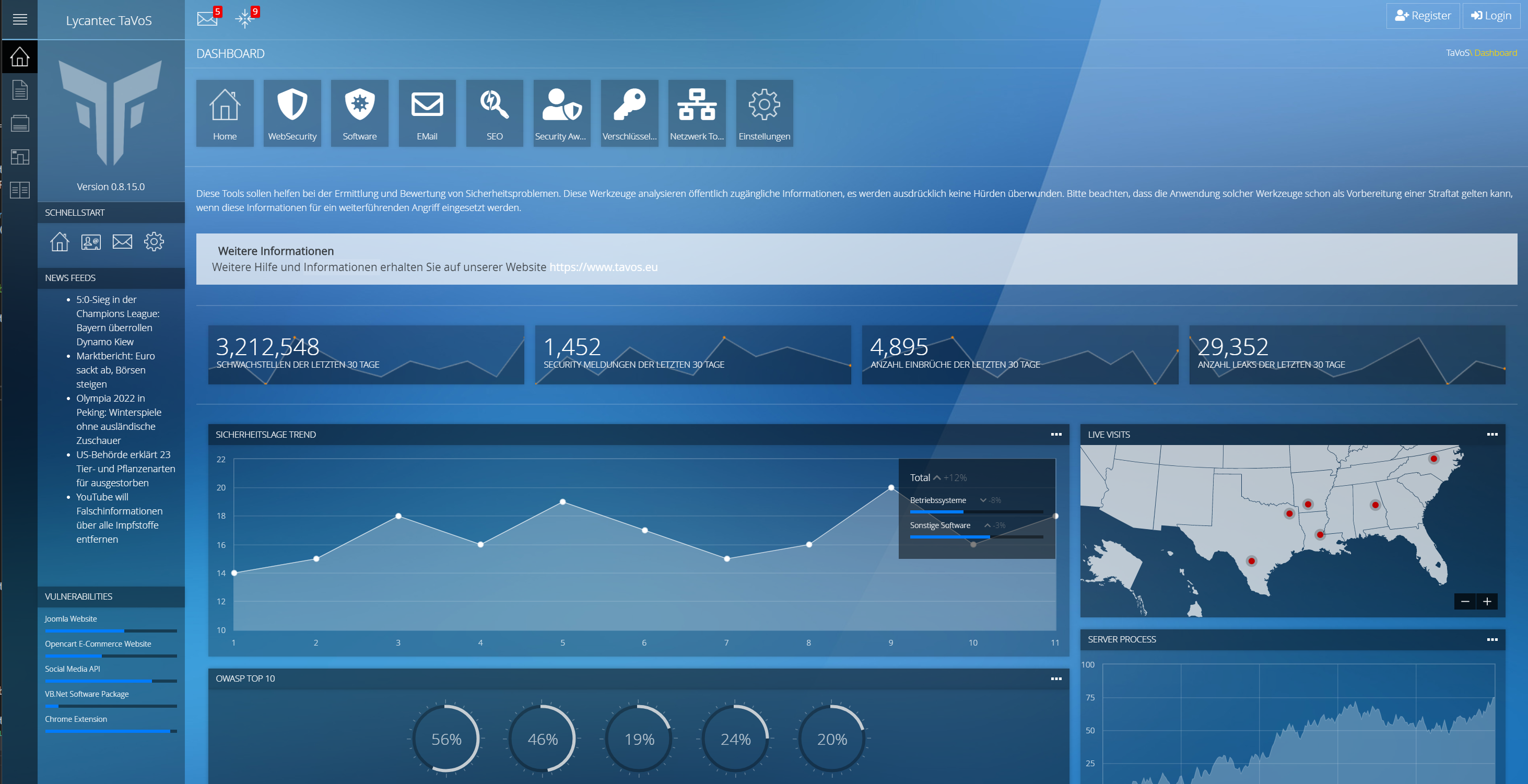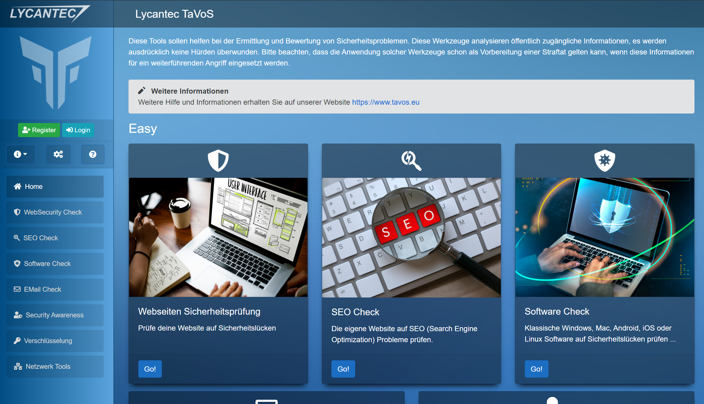 Benutzerfreundliche Lösung zum Prüfen auf bekannte Sicherheitslücken sowie weitere sicherheitsrelevante Online Tools für die eigene Website.