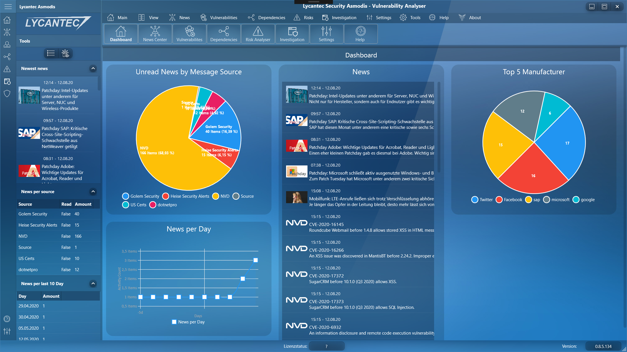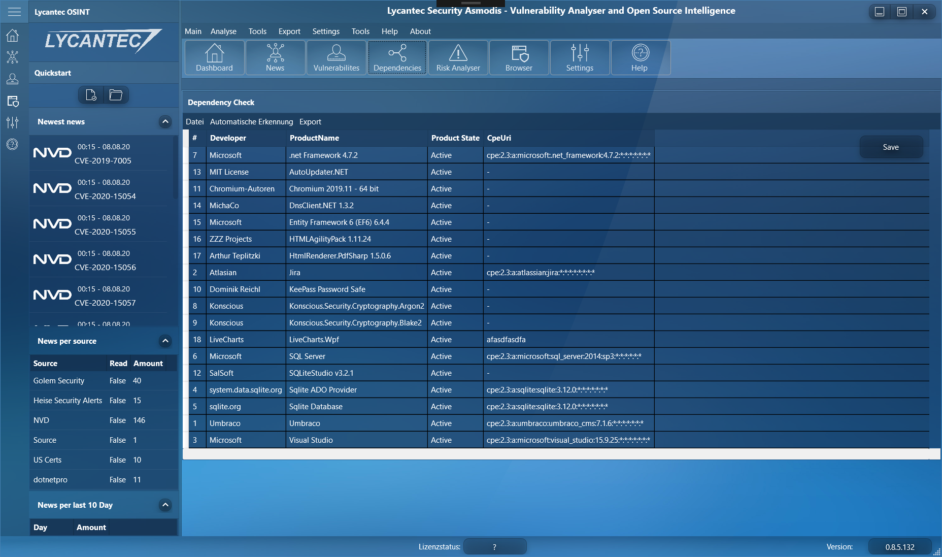 When the News Center or Vulnerability Center each receive new information from your sources, the information is checked against your data in the Dependency Manager - and thus the alerts are generated for the Alert Hub.